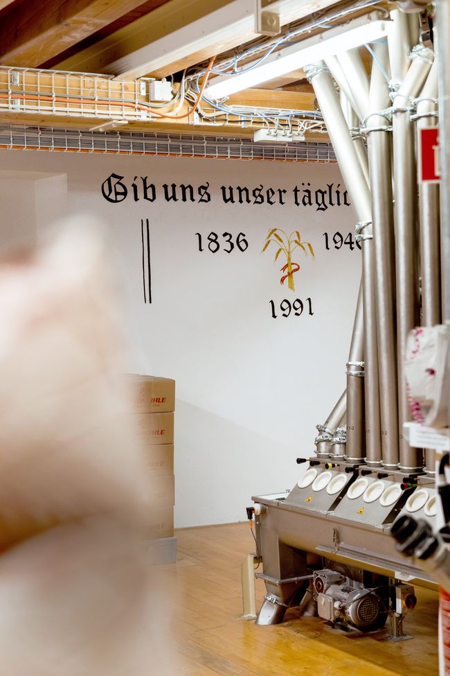 Die Lindmühle AG gehört zu den grösseren Müllerei-Betrieben in der Schweiz. Gut 18 000 Tonnen Mehl werden pro Jahr produziert. Das sind 50 Tonnen am Tag. Das Getreide stammt mehrheitlich aus den Kantonen Aargau und Zürich. Produziert werden daraus 350 verschiedene Mehlsorten. Entsprechend komplex ist die Organisation des Betriebs. Koordination der Getreidelieferungen, Erstellung der Produktionspläne, Einteilung des Personals, Steuerung der Anlage sowie die Abholung oder Auslieferung des Mehls – all das gehört dazu und wird von der Betriebsleitung übernommen. Die hat ihr Büro übrigens genau dort, wo einst das Kinderzimmer von Jeannine Lehmann, Fiona Weber und ihrer Schwester stand. Direkt neben der immer «zitternden» Siebmaschine.